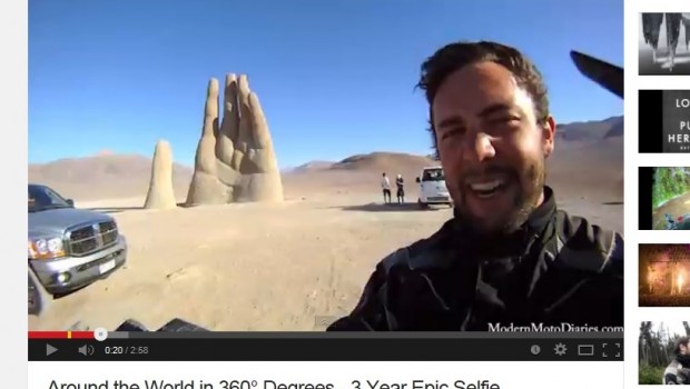 600 dagen op 5 motoren door 36 verschillende landen: avonturier Alex Chacón maakte een epische wereldreis, een soort moderne ‘Motorcycle Diaries’, en maakte in ieder land ‘selfie’-filmpjes. Dat leidde tot deze fantastische videocompilatie!